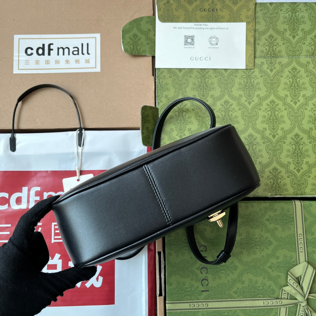 EQUESTRIAN STYLE SHOULDER BAG 21 IN BLACK CALFSKIN GOLD HARDWARE