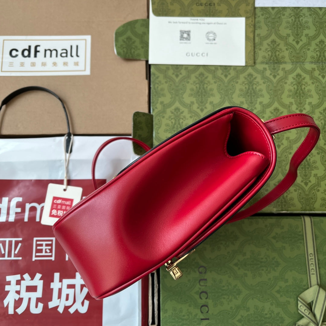 EQUESTRIAN STYLE SHOULDER BAG 21 IN RED MIX BLACK CALFSKIN GOLD HARDWARE