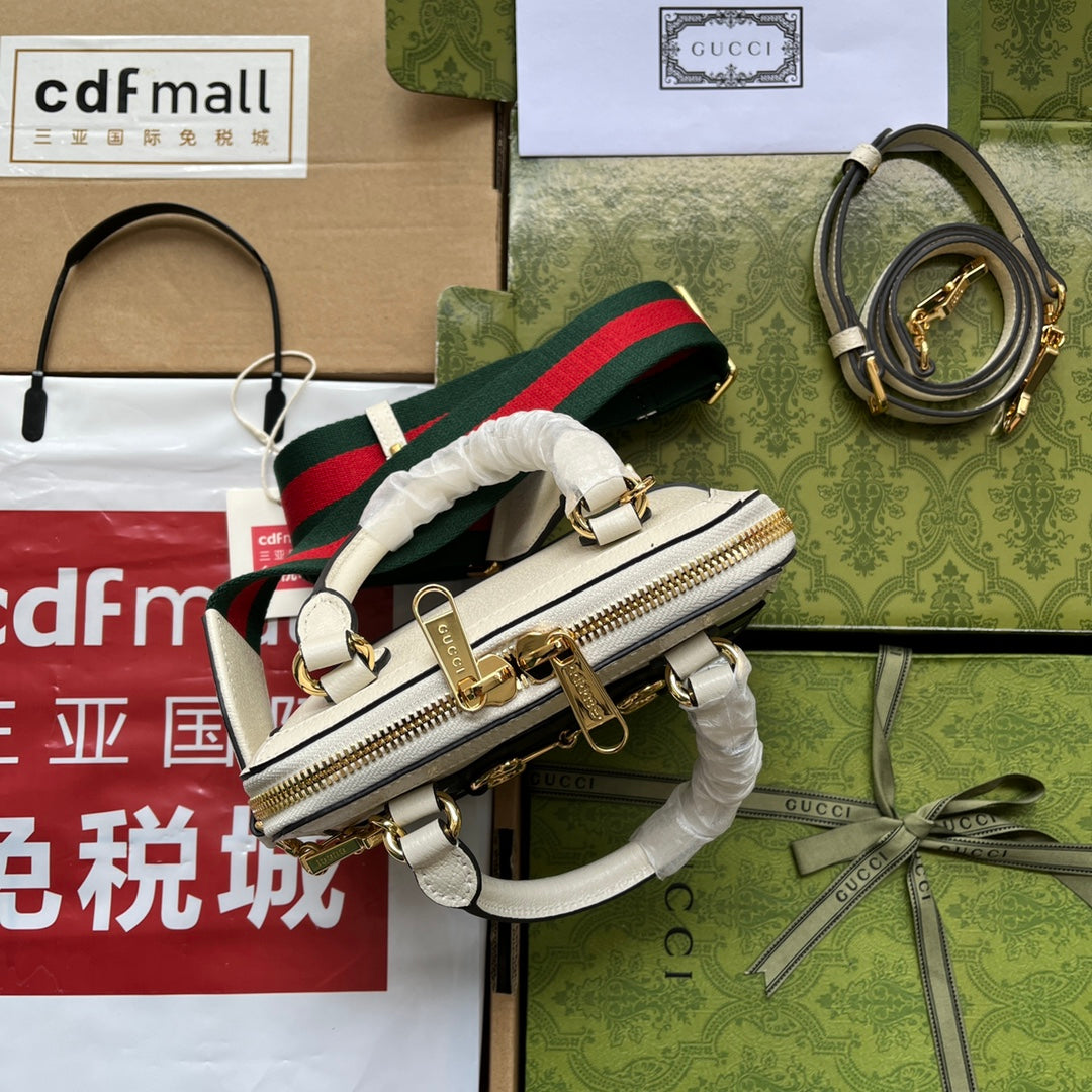 GGxADIDAS HORSEBIT 1955 TOTE BAG 20 WITH WEB STRAP IN WHITE MIX BLACK CALFSKIN GOLD HARDWARE