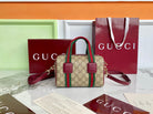 Gucci 25 GG Handbag 20cm Beige mix Rosso Ancora Red Canvas Leather 286710