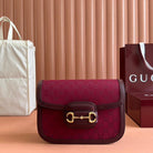 HORSEBIT 1955 SHOULDER BAG 25 IN WINE RED CANVAS AND CALFSKIN GOLD HARDWARE