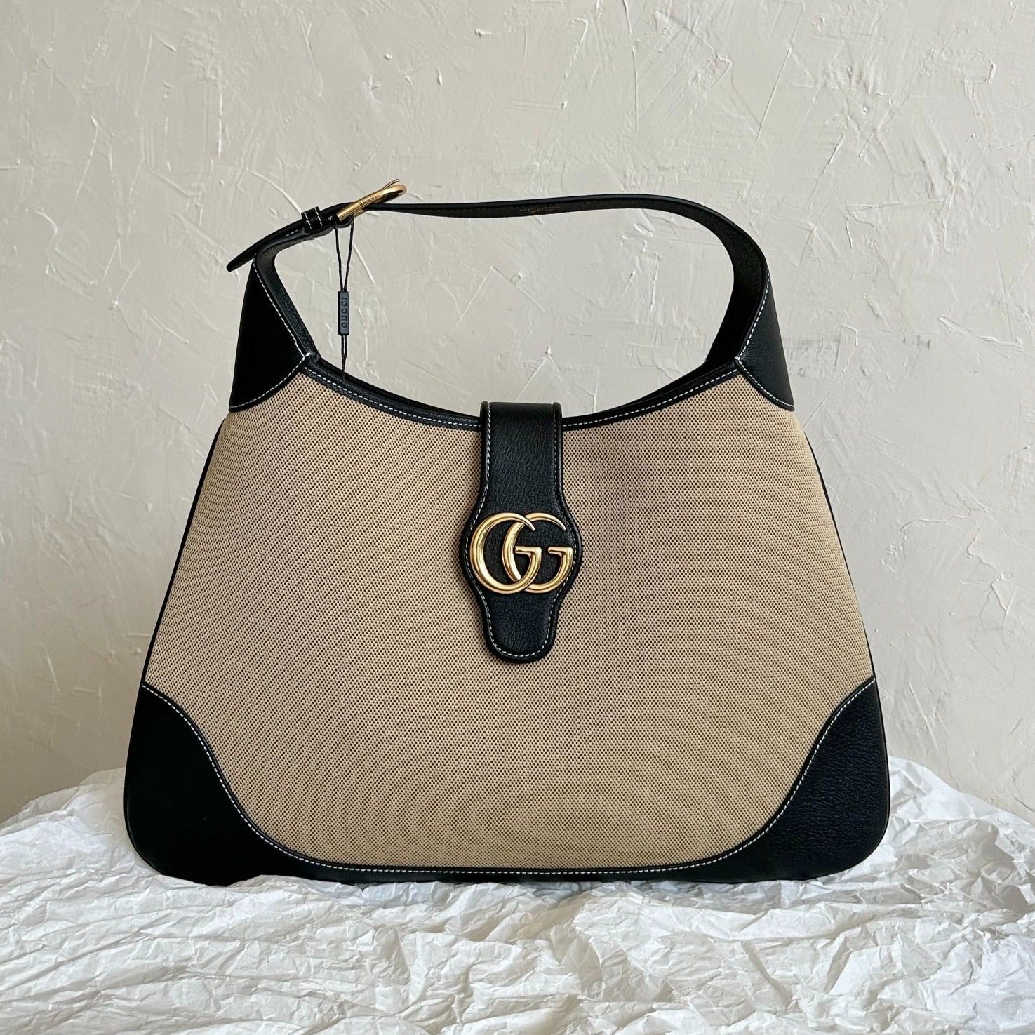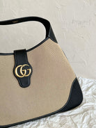 LARGE APHRODITE 47 BAG BEIGE CANVAS AND BLACK CALFSKIN
