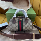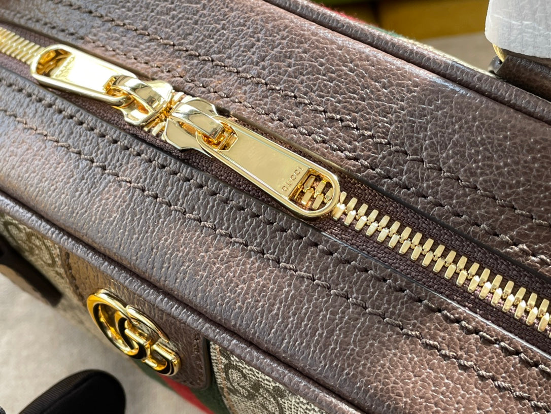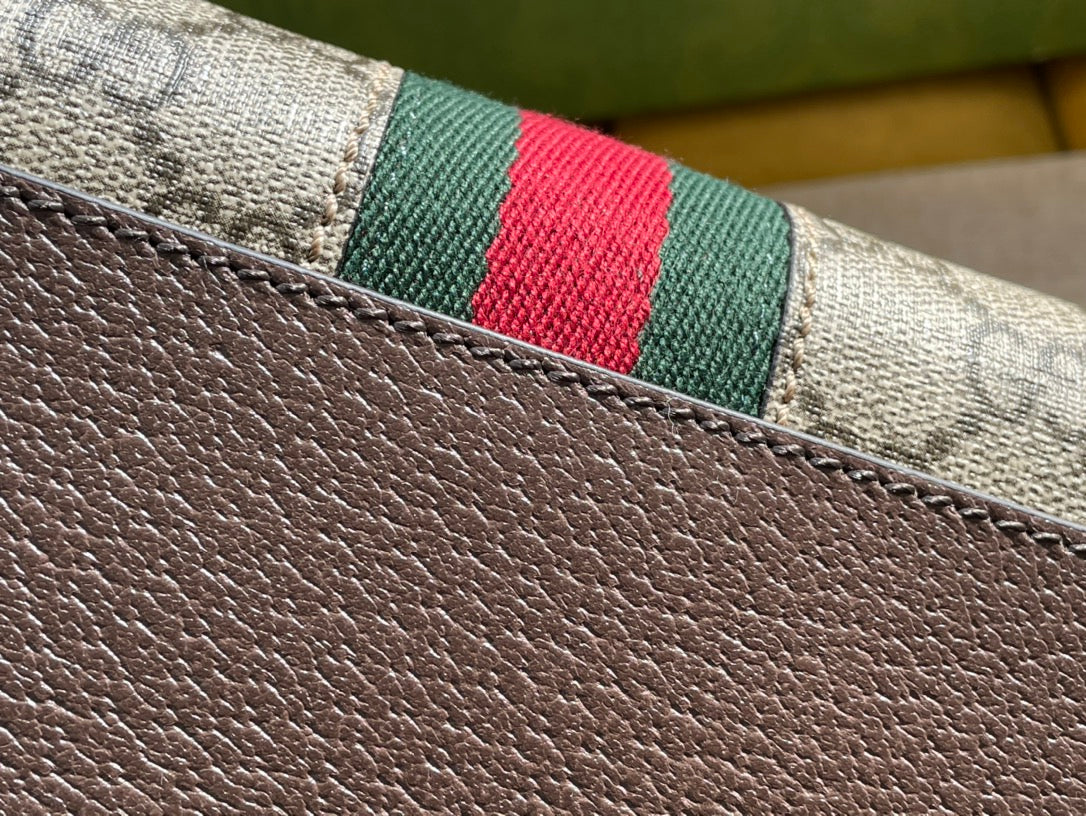 OPHIDIA GG SMALL 21 SHOULDER BAG BEIGE AND EBONY SUPREME CANVAS