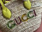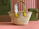 SMALL TOTE BAG 20 WITH LOGO IN NATURAL-COLORED STRAW AND YELLOW CALFSKIN HANDLE