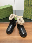 GG SNOW BOOTS IN BLACK EMBOSSED DEERSKIN AND BEIGE WOOL LINING