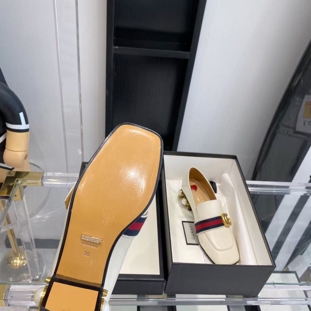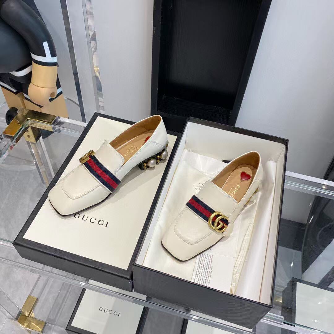 GG Pearl Embellished Block Heel Loafer 40mm White Leather GHW