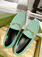 MEN'S LOAFER WITH HORSEBIT IN MINT GREEN MONOGRAM JACQUARD FABRIC