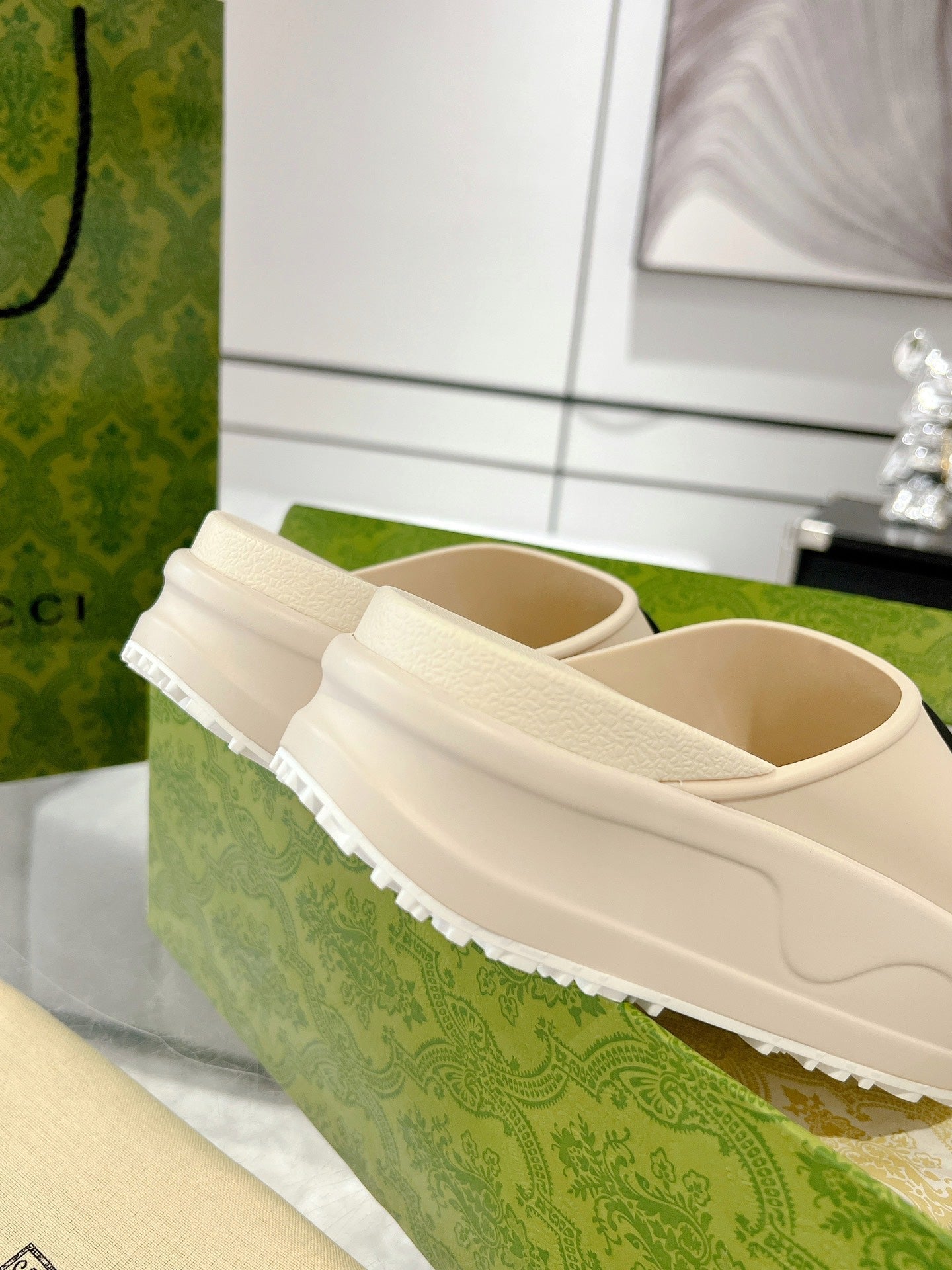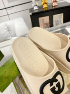 GC 25 Interlocking G 50mm Slide Sandal Beige Black Cowhide 292398