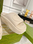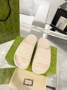 GC 25 Interlocking G 50mm Slide Sandal Ivory Cowhide 292379