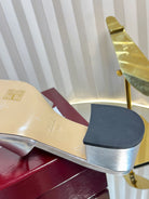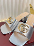 GC 25 Interlocking G Heeled Sandal Silver Patent Leather 294641