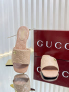 GC Double G Slide Sandals Nude Embossed Leather 294632