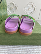 GC sandal with Double G Purple Canvas Sheepskin 291018