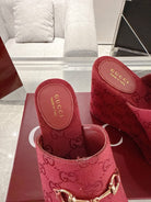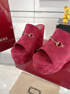 GC Wedge With Horsebit Sandal Red Canvas 292422