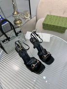GG Gold Buckle Sandal 80mm Black Patent Leather 457555