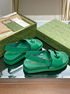 GG INTERLOCKING G CUT OUT SANDAL JADE GREEN LAMBSKIN