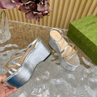 GG PLATFORM SANDAL SILVER CALFSKIN WITH CHAINS