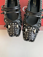 GG RIVETS BALLET FLAT BLACK HORIZONTAL STRAPS LAMBSKIN