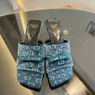 GG VELVET HIGH HEEL SANDALS WITH BEAUTIFUL LOGO DETAILS BLUE SKY