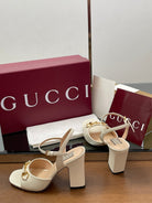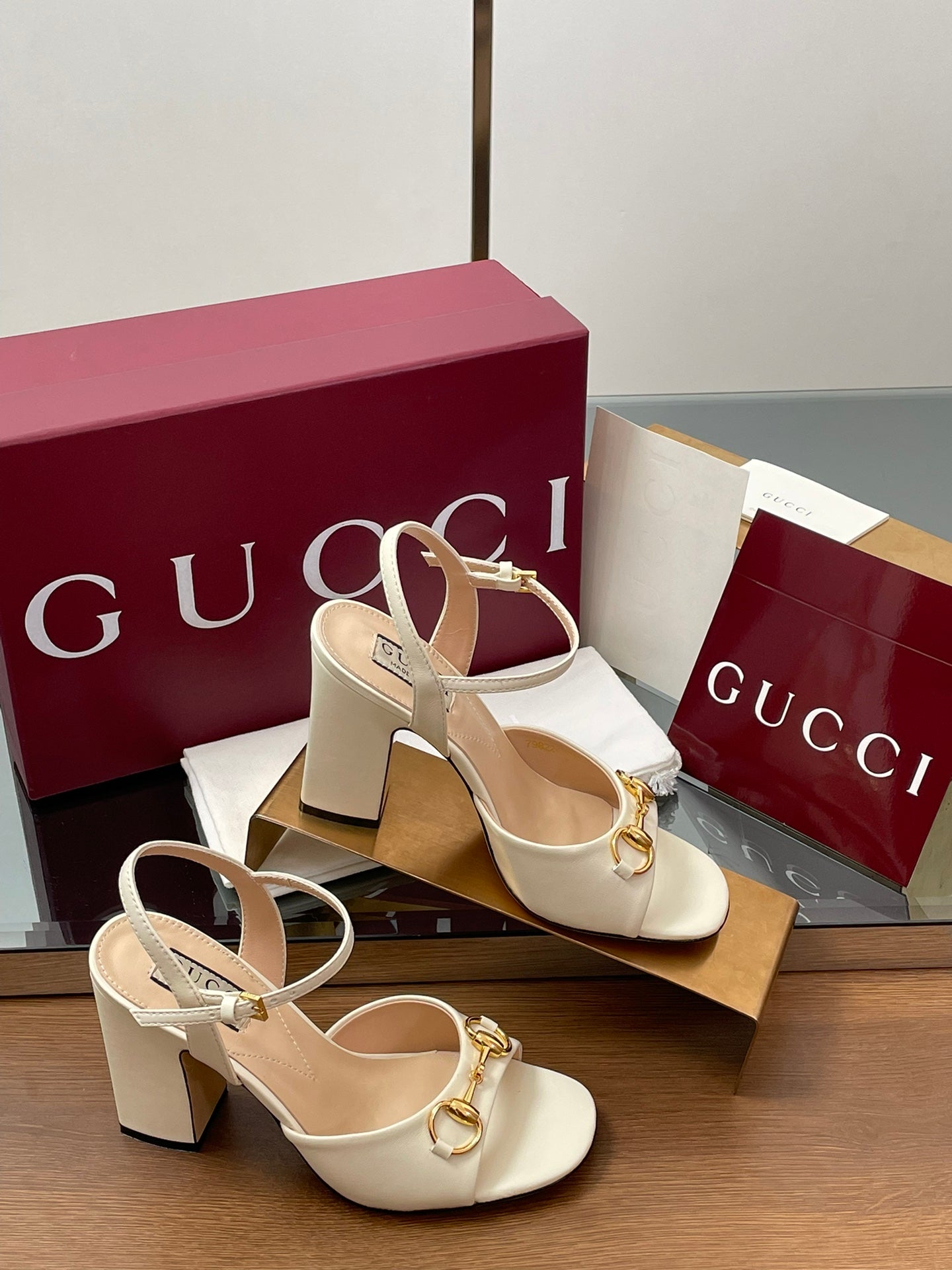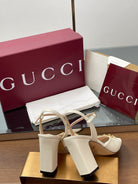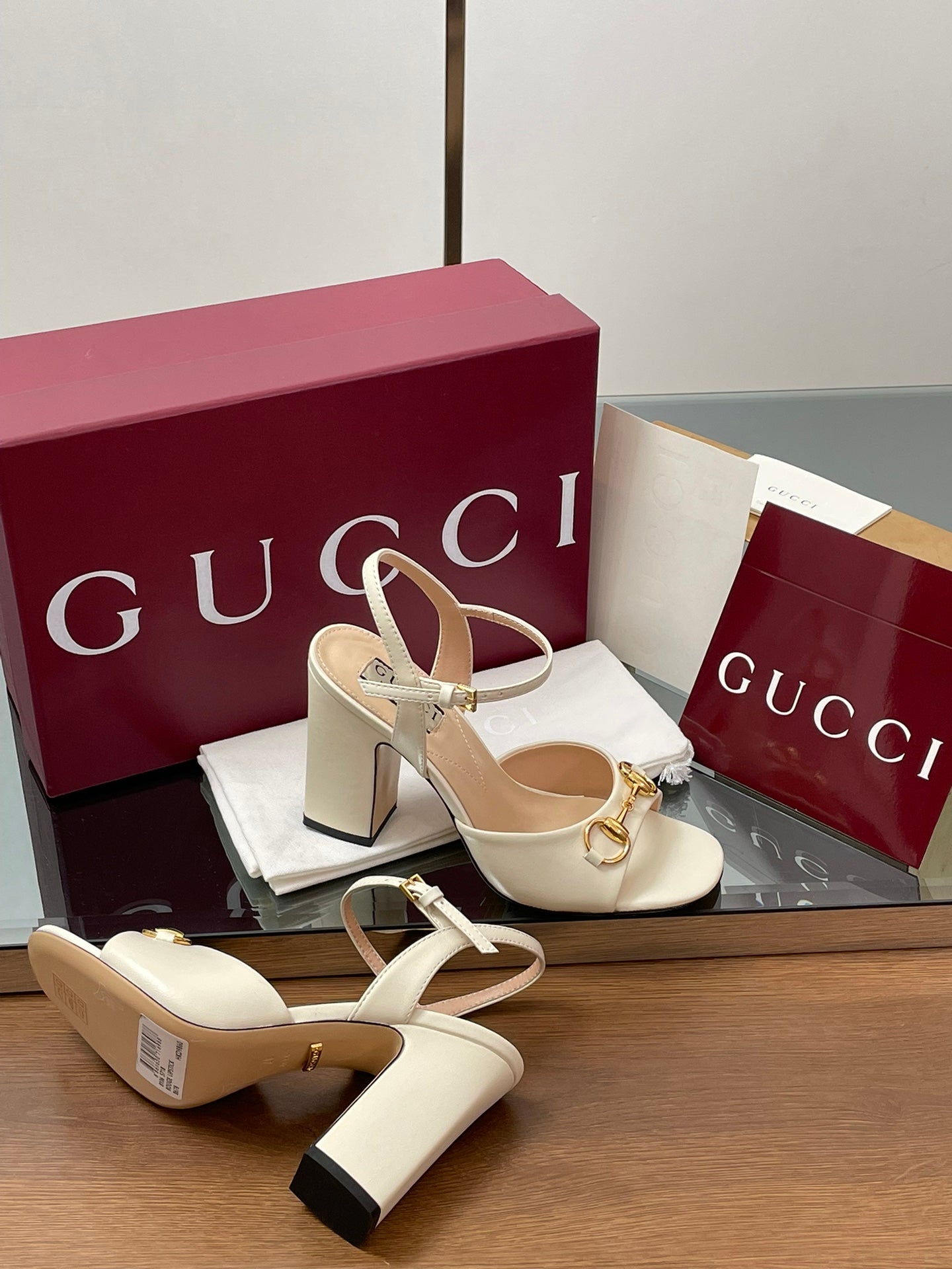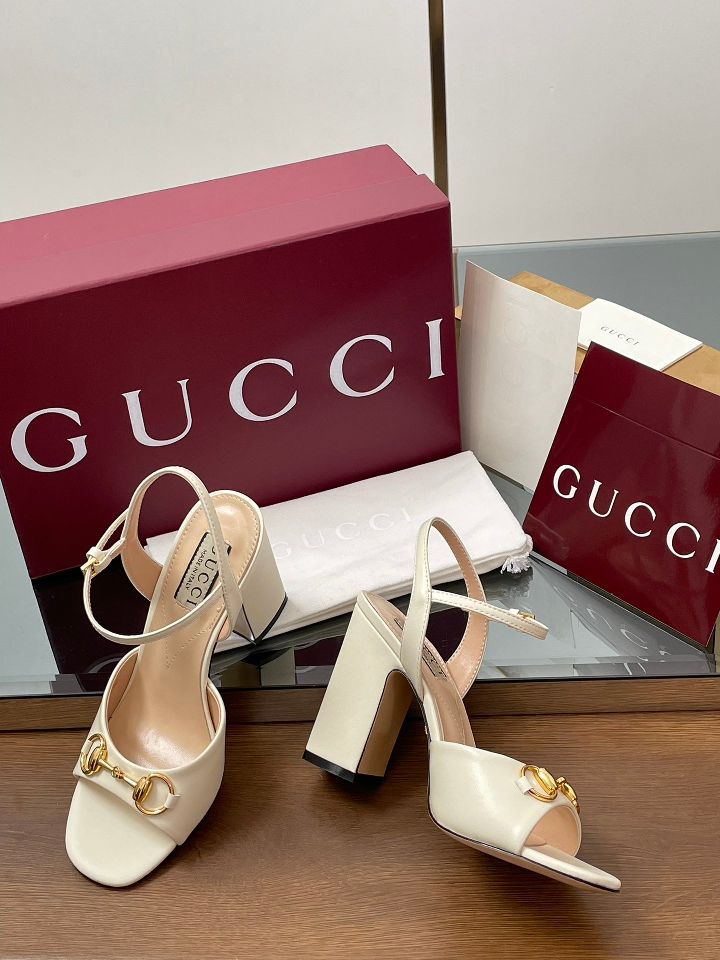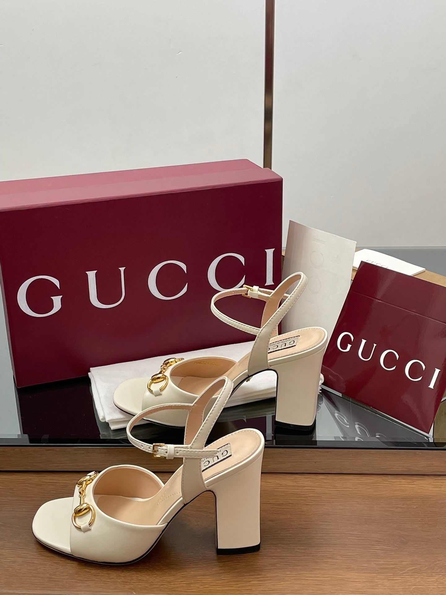 GG Women Horsebit High Heel Sandal Open Toe Cream Sheepskin 225969