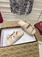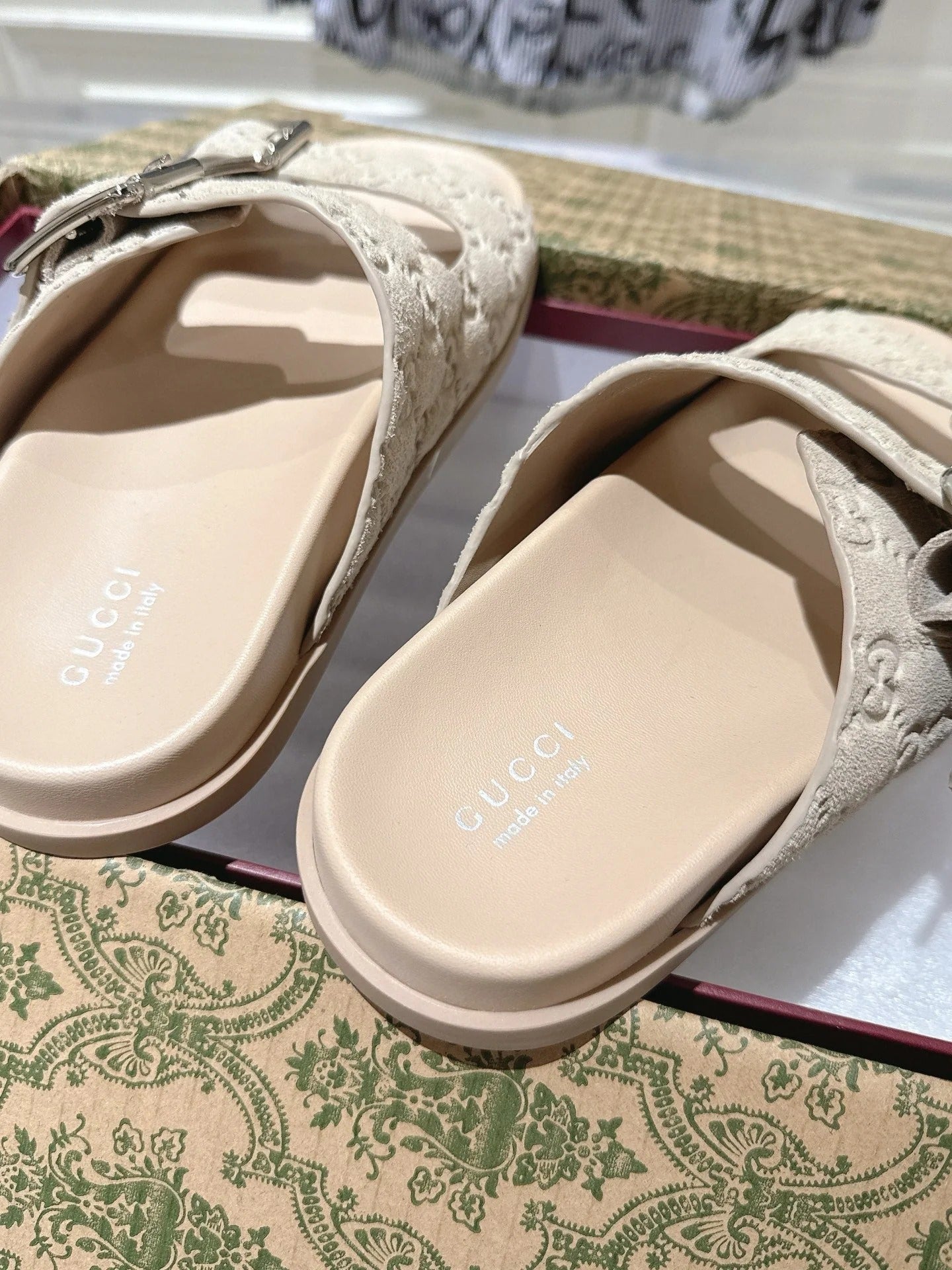 SANDALS IN NUDE BEIGE SUEDE EMBOSSED LOGO SILVER HARDWARE