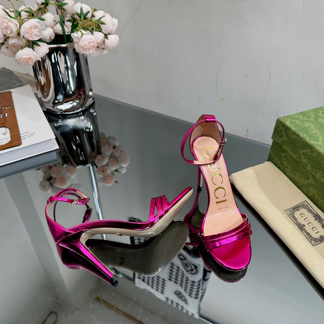 GG CRYSTAL HIGH HEEL SANDAL BRIGHT PINK LAMBSKIN
