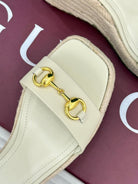 GC Floral Platform Wedge Sandal White lambskin