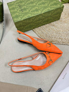 GC Horsebit Slingback Pump 10mm Orange Canvas Sheepskin 294540