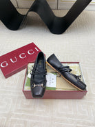 GG BALLET FLAT BLACK HORIZONTAL STRAPS LAMBSKIN