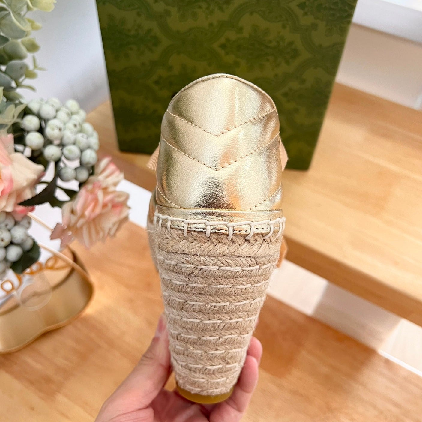 GG Crochet platform Espadrilles Rose Tan Leather