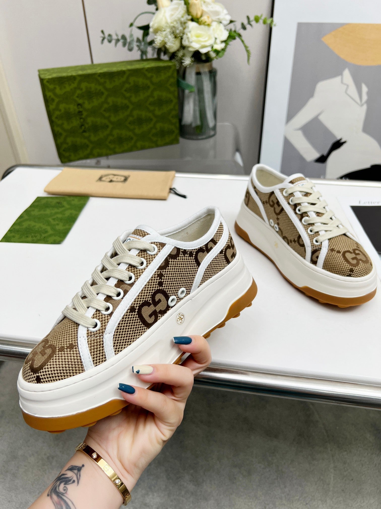 GG Low Top Sneakers 50mm Beige Brown Monogram Canvas 457430