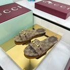GG SLIDES IN DARK BEIGE WITH GOLD HARDWARE