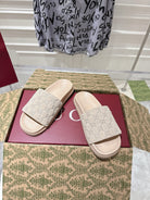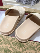 GG SLIDES IN NUDE BEIGE SUEDE WITH EMBOSSED LOGO STYLE 2