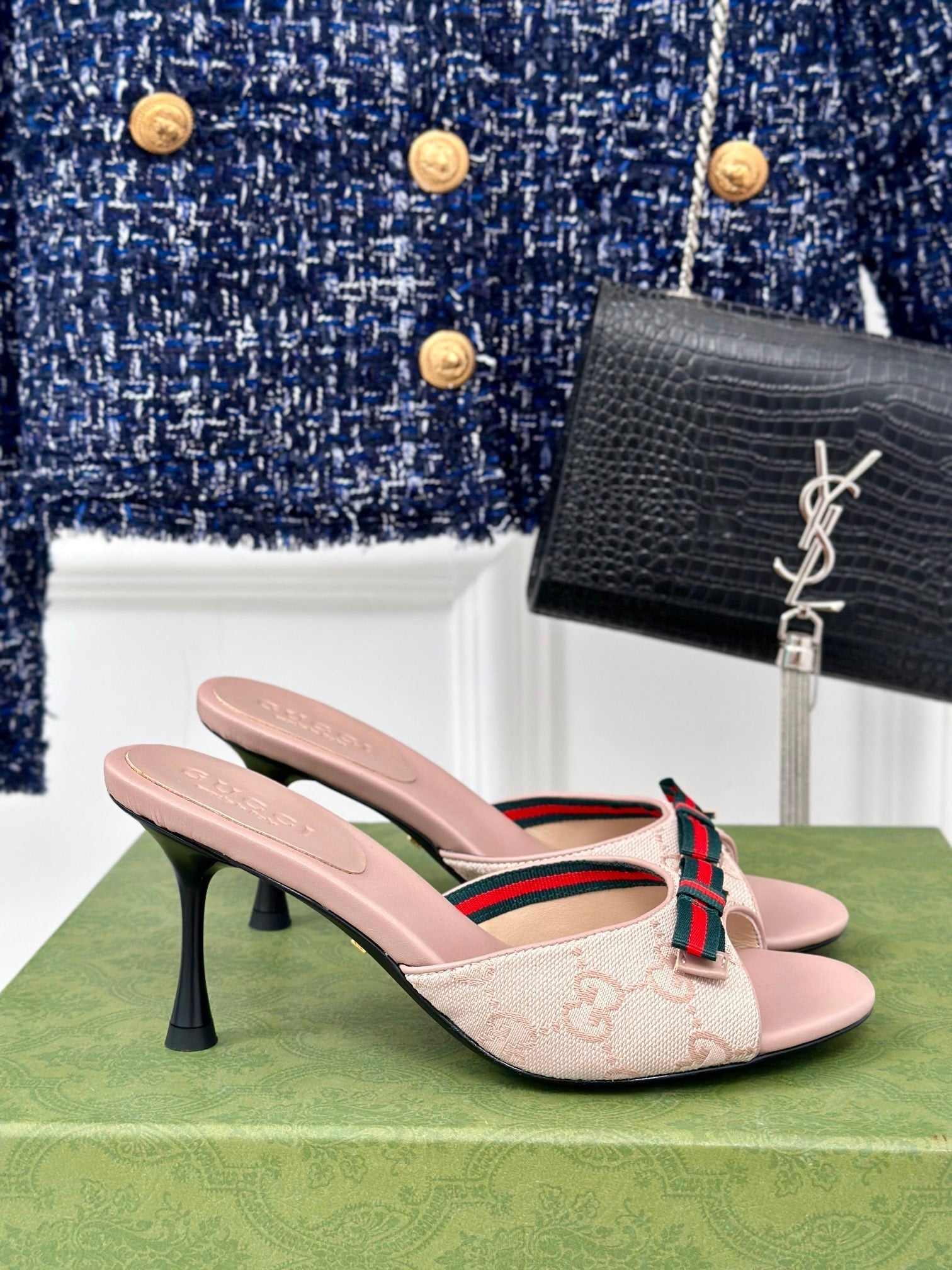 GG Vintage High Heel Slippers Pink Blush