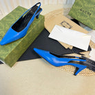 GG Women's G pointed silver-letter Logo slingbacks Azure Blue