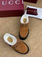 Gucci FW 25 Horsebit Suede Clog Camel Suede with Shearling 506444