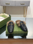 HORSEBIT MULE IN BLACK EMBOSSED CALFSKIN AND LAMB WOOL LINING