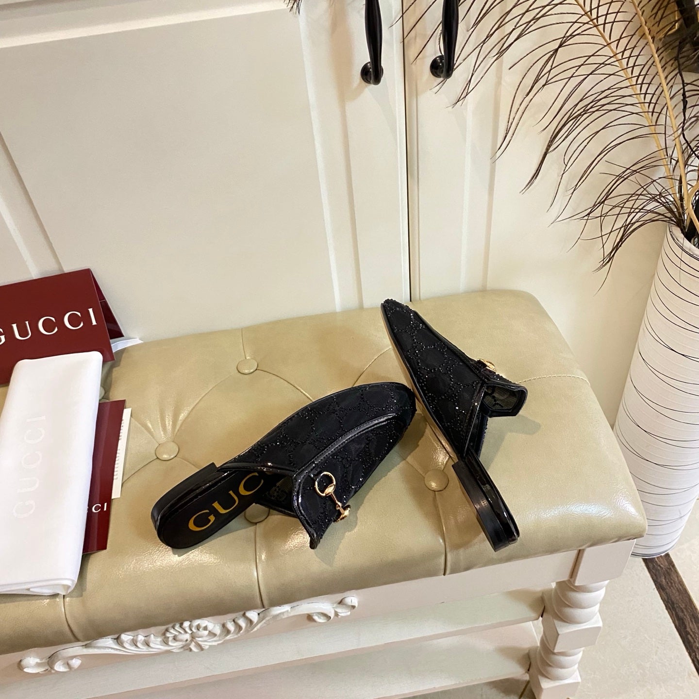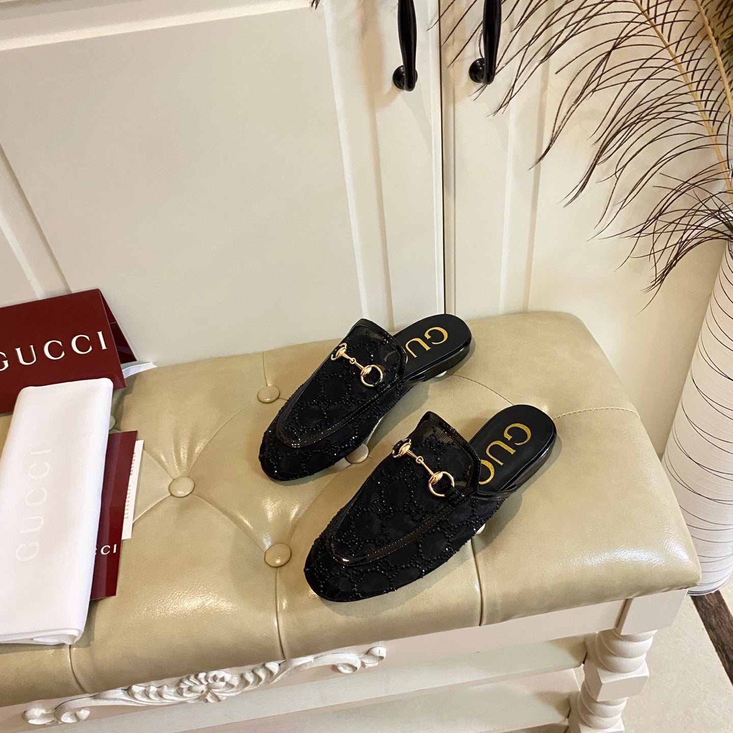 GG Princetown Slipper Black Calfskin Tuscan Wool
