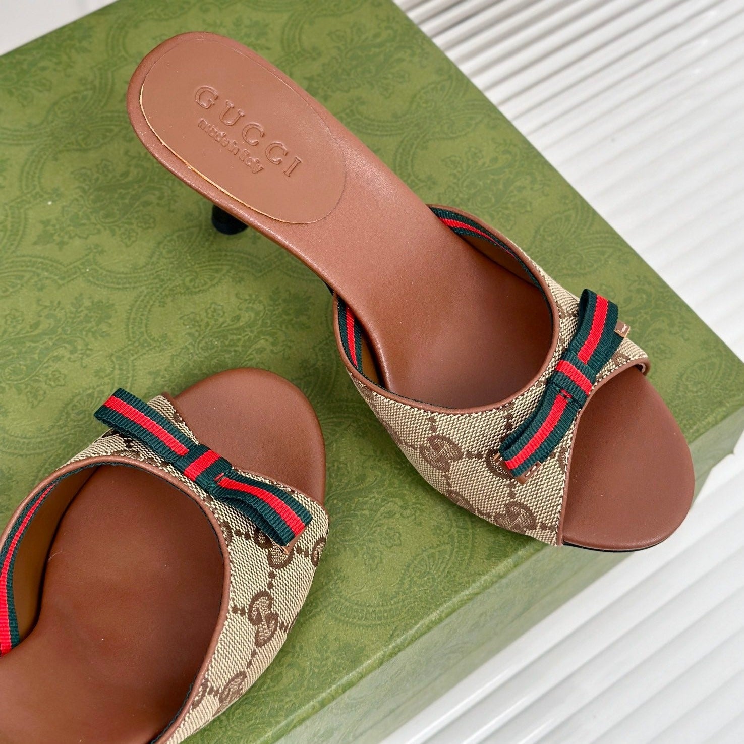 GG Vintage High Heel Slippers Brown