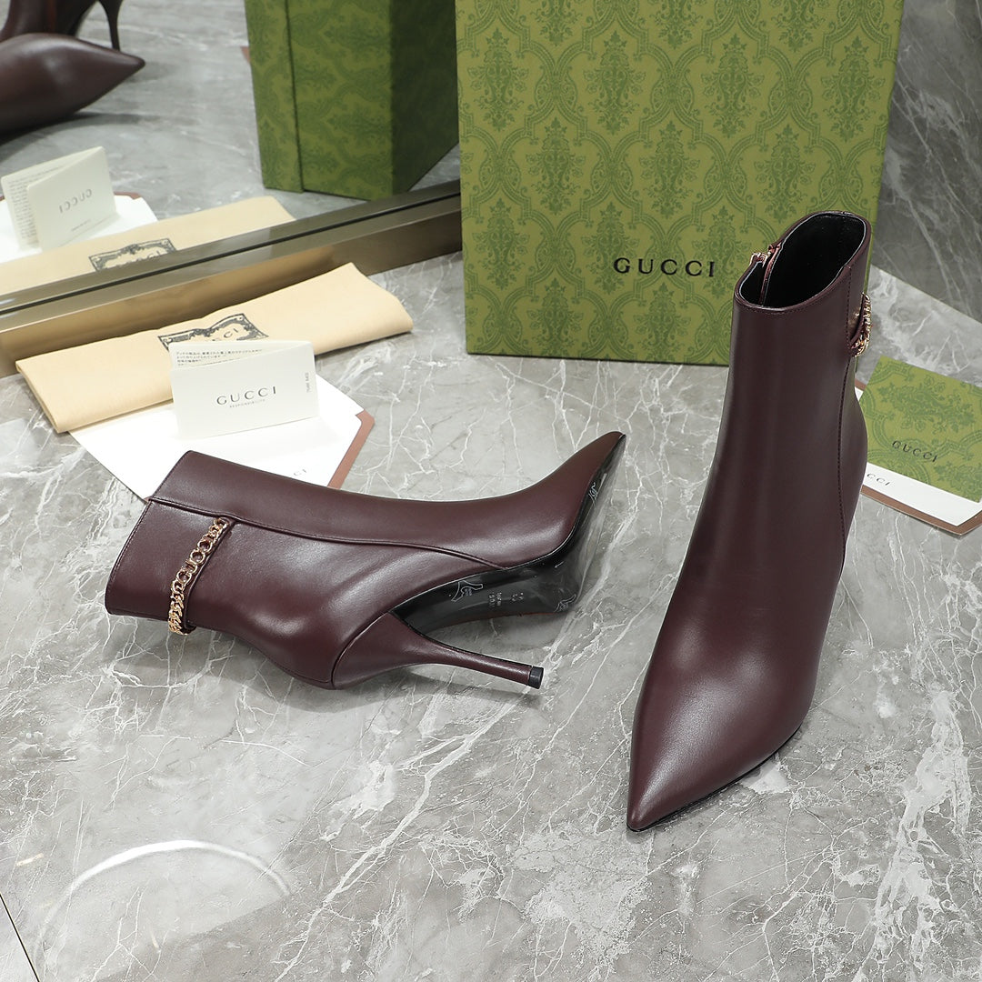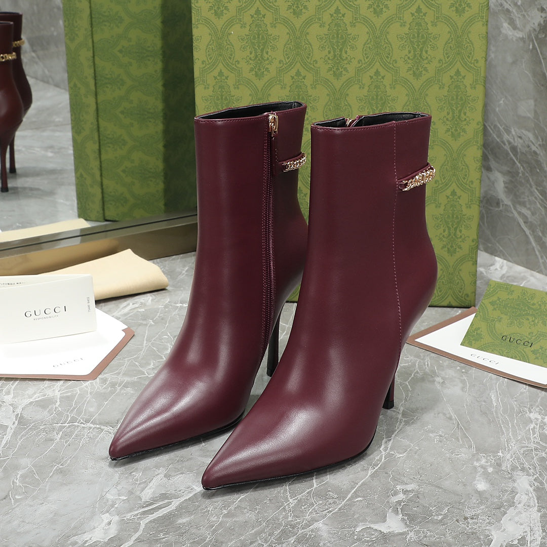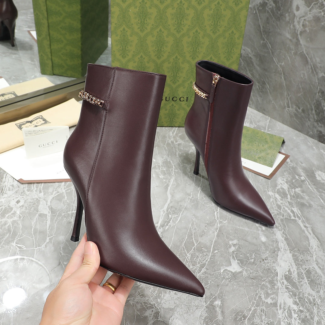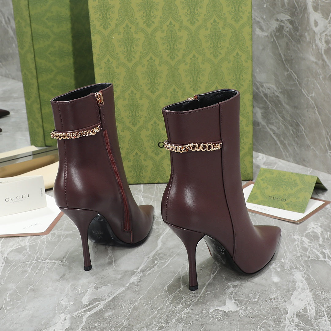 GG Ankle Boots with Chain 105mm Burgundy Calfskin 432681