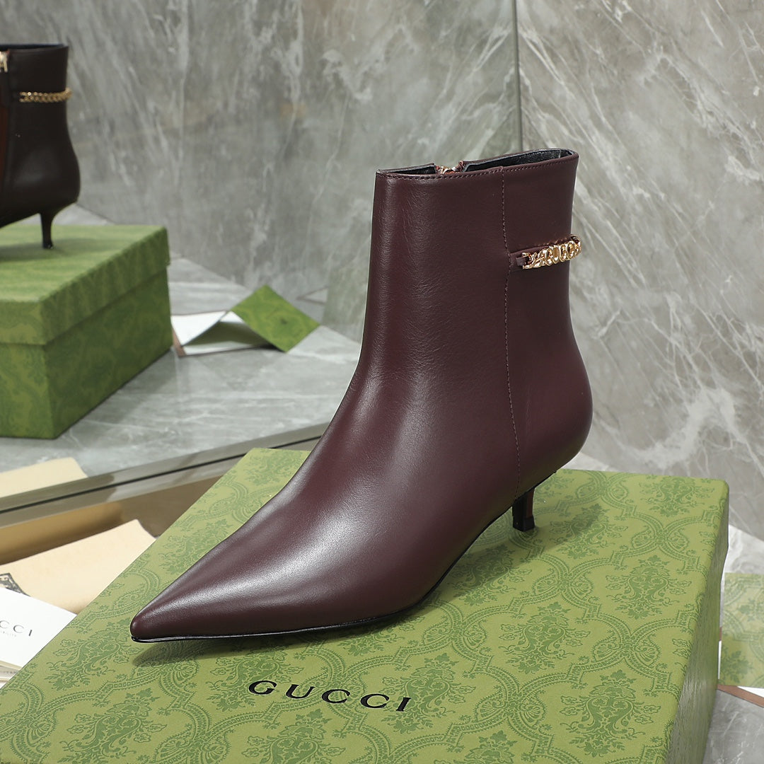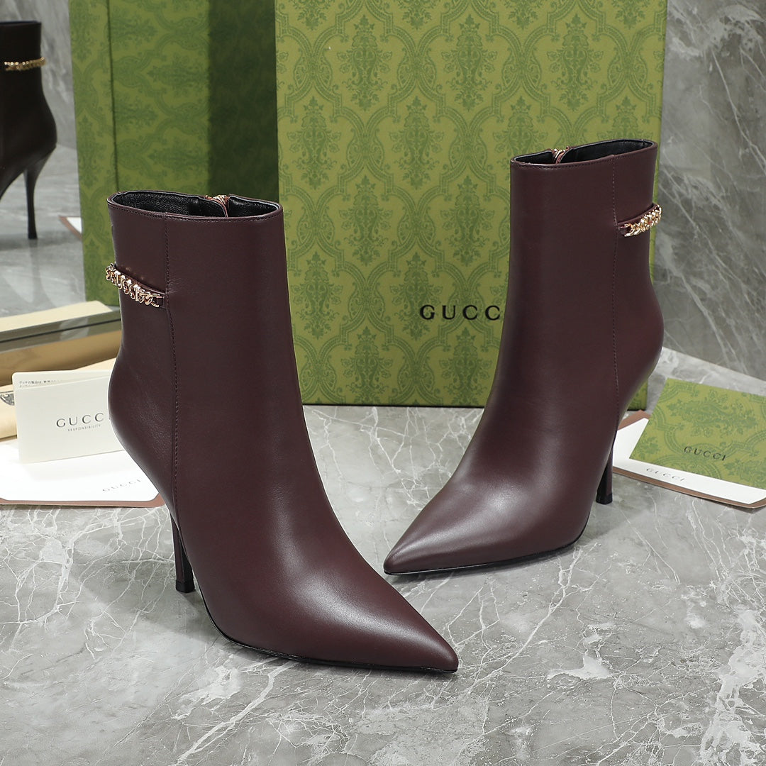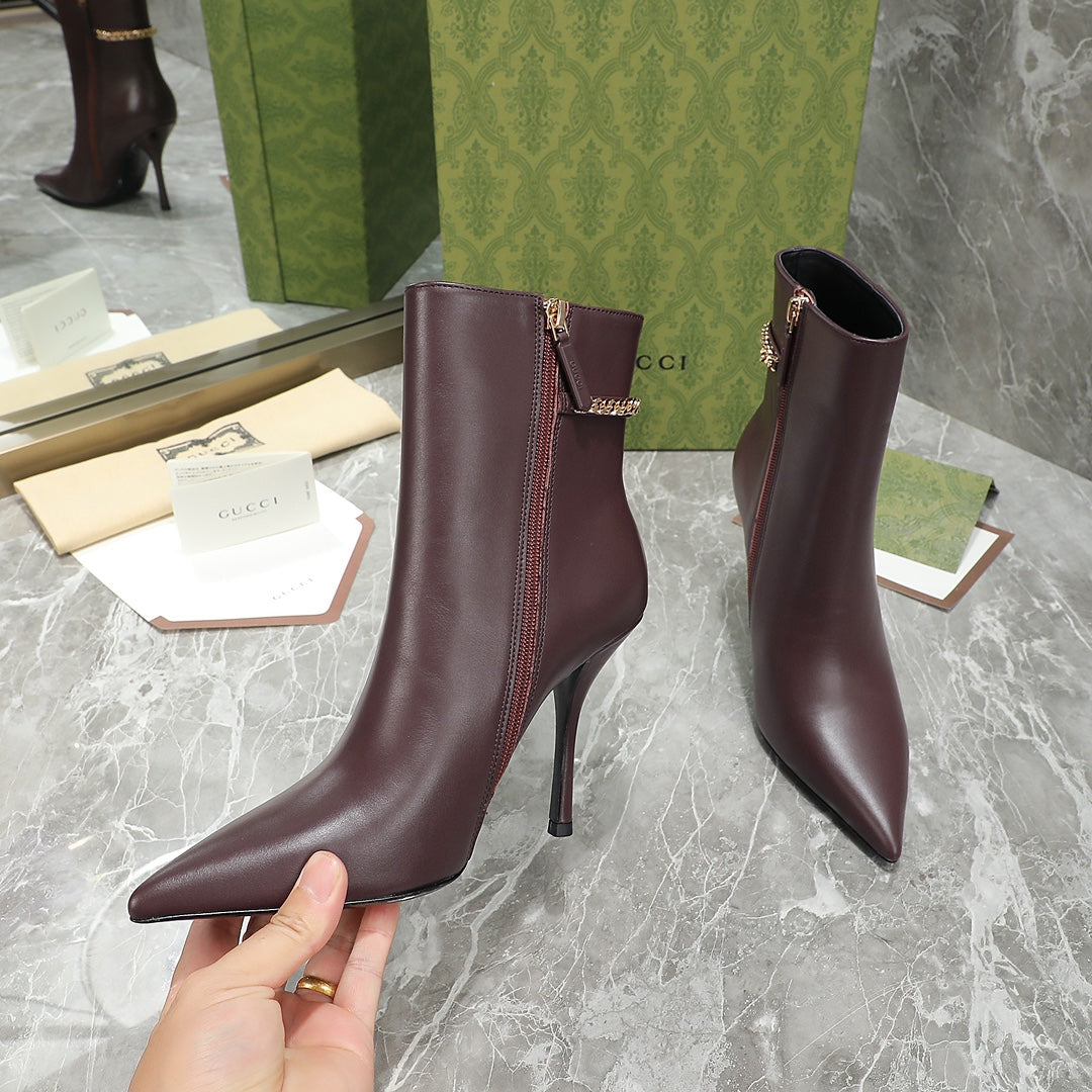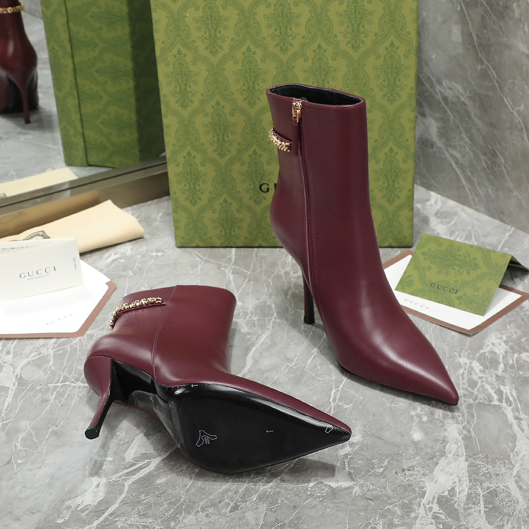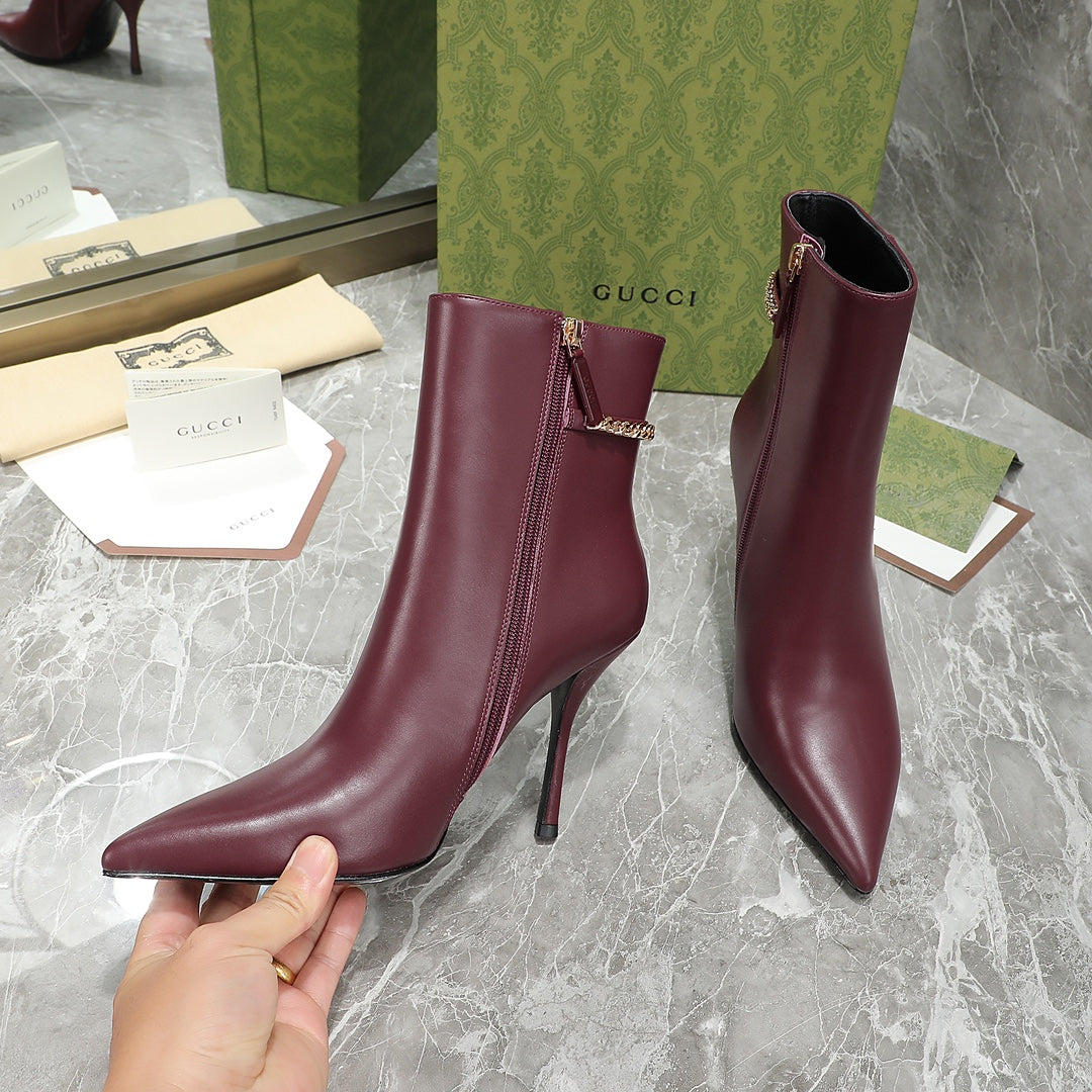 GG Ankle Boots with Chain 105mm Burgundy Calfskin 432681
