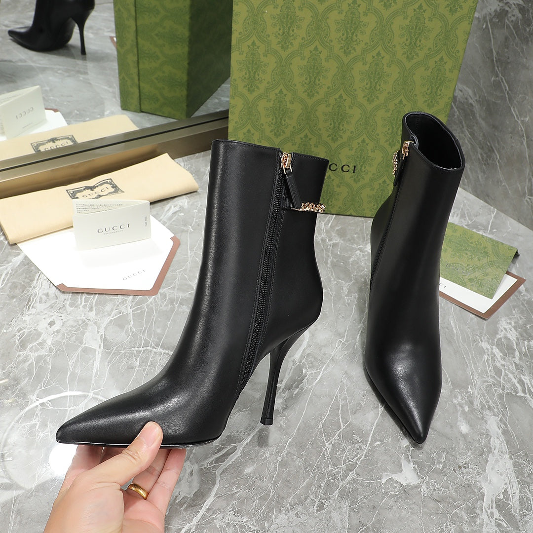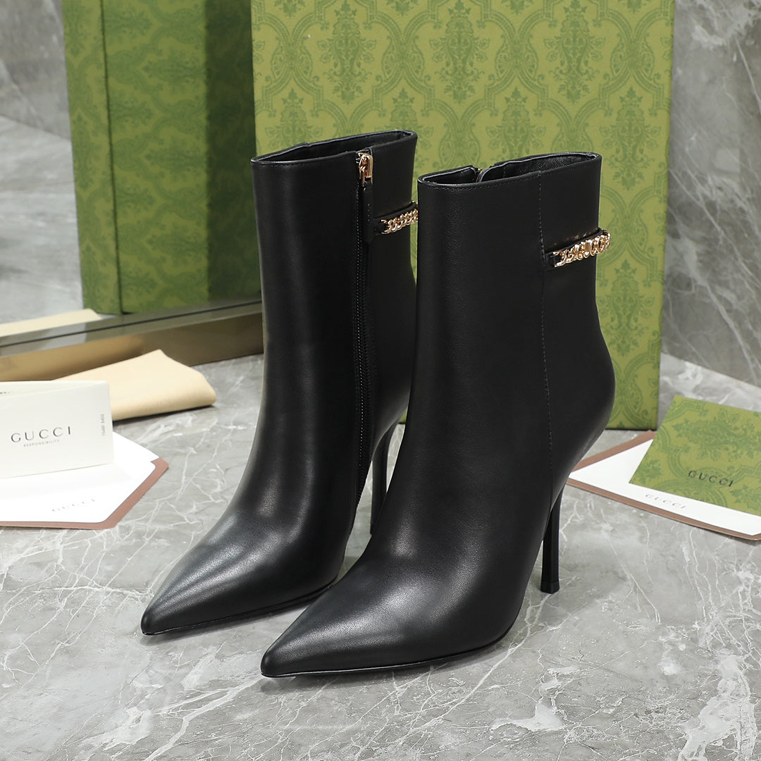 GG Ankle Boots with Chain 105mm Black Calfskin 432682