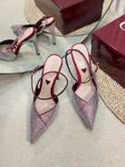 GC Crystal-Embellished Slingbacks Red Silk Sheepskin 294609