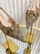 GC Crystal Horsebit Slingback 10mm Beige mix Ebony Canvas lambskin 294614