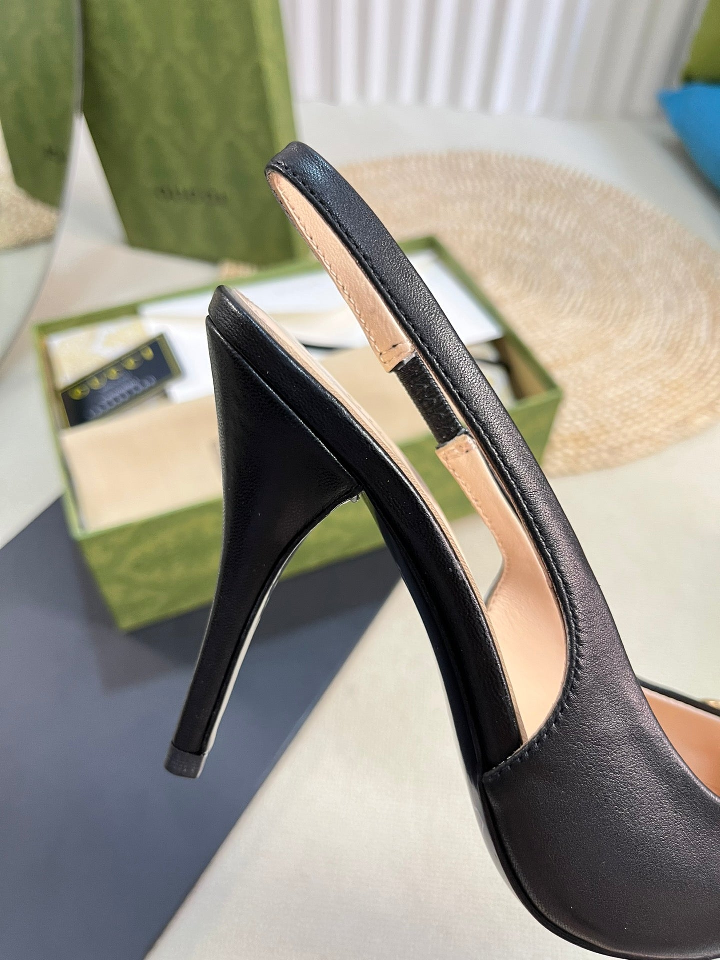 GC Horsebit Slingback Pump 100mm Black Sheepskin 294569