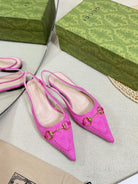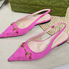 GC Horsebit Slingback Pump 10mm Pink Canvas Sheepskin 294543