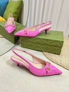 GC Horsebit Slingback Pump 50mm Pink Canvas Sheepskin 294547