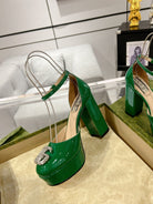 GG CRYSTALS PLATFORM PUMPS JADE GREEN CALFSKIN