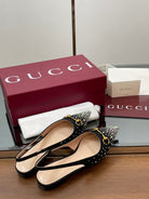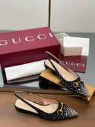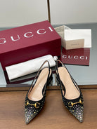 GG Horsebit Slingback Flat Black Ebony Monogram Canvas Point Toe Crystal-Embellished
