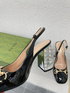 GG WOMEN'S HORSEBIT SLINGBACK 95MM IN BLACK CALFSKIN WITH RHINSTONES