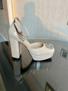 platform pump 12cm with double beige patent leather
